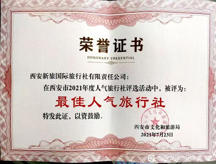 西安新旅國際旅行社地處西安市中心鐘樓商圈;是經工商局和文旅局雙重審批的一家綜合性旅游企業(yè)!
