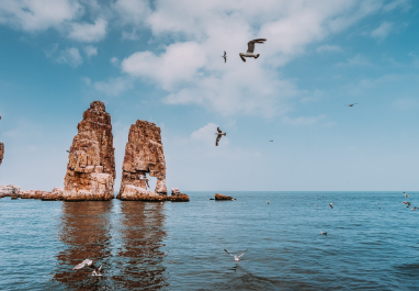 這里是威千公里幸福海岸線的起點,祝福人們在這里開啟幸福之門,踏上幸福岸線,沐浴在幸福的海洋里。后乘車赴榮成。榮成市位于山東半島最東端,這里風光旖旎、冬暖夏涼、春溫秋爽,海洋資源極其豐富,是一座美麗的濱海城市。約1小時車程。贈送游覽5A級風景區(qū)【成山頭】(門票已含):是中國大陸伸向海洋的最東端,古時被稱之為“天盡頭”, 2005年被《中國國家地理》評為“中國最美的八大海岸”大陸第一名。游覽【好運角景區(qū)】景區(qū)獨具特色,三面環(huán)海,一面接陸,海天一色,風景極其壯美,與韓國隔海相望,是中國最早看見海上日出的地方,自古就被譽為"太陽啟升的地方",后歷代帝王均有幸成山拜日神之舉,這里是名副其實的金烏之巢、太陽之家,遠觀海驢島,天鵝湖,宛如仙境,讓人流連忘返。而后參觀【福如東海文化區(qū)】景區(qū)自然地貌宛如一只浮在海上的巨大葫蘆,寓意“福祿雙全”。 景區(qū)內風光獨特,建筑風格迥異,山水相映,群芳爭艷,島湖相連,魚躍鷗翔,人們在此既可以燃香祈福,又可蕩漿戲水,也可趕海拾趣,還可以品嘗海珍、抒發(fā)情懷,在碧海藍天之間暢游,在樂中領略“福”的真諦,置身其中,陶然于世外!隨后入住倪氏海泰度假酒店,酒店毗鄰海水浴場,依山環(huán)海,環(huán)境優(yōu)美。整個酒店建筑融于大海、沙灘、松林、湖泊之中。